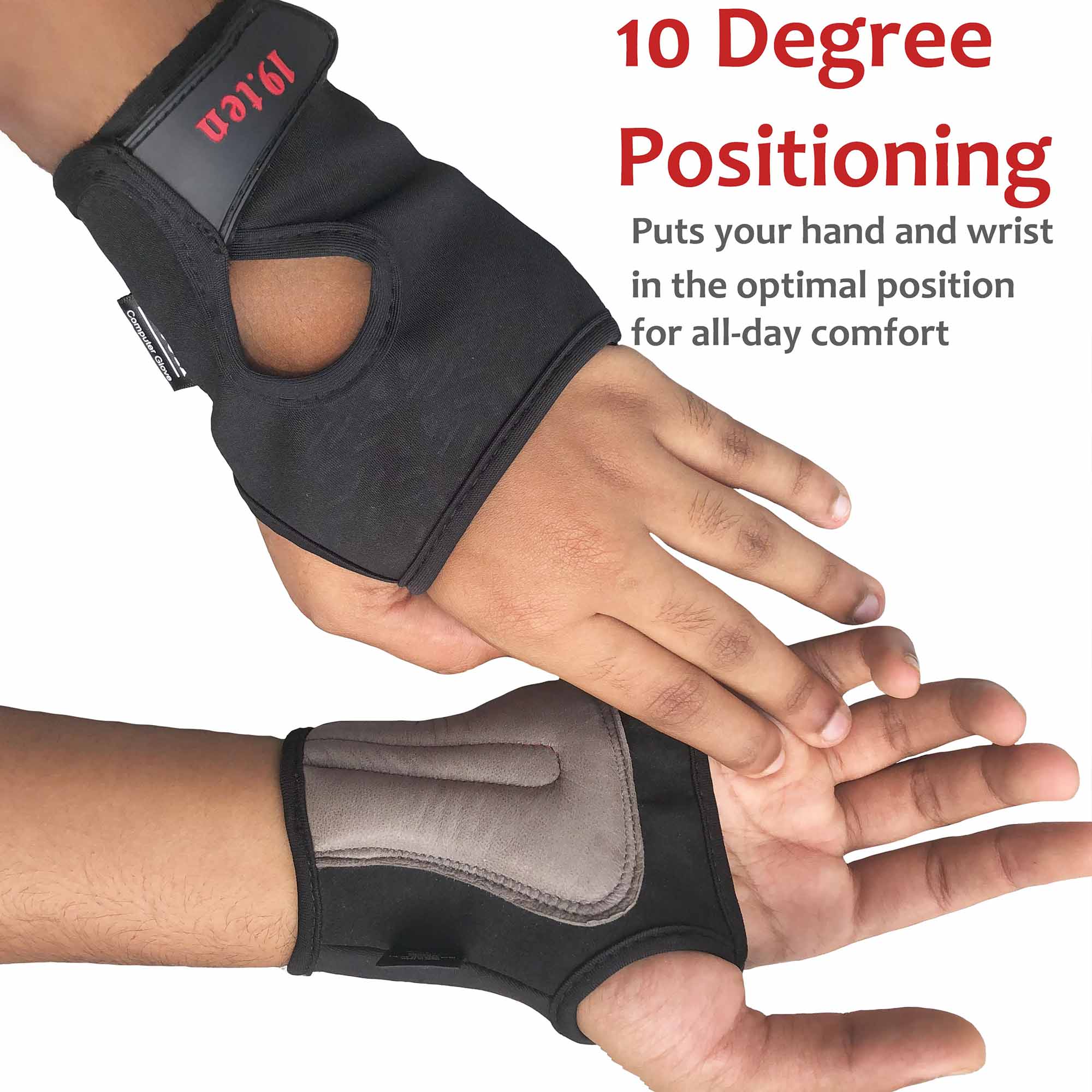 10 Degree Positioning: The Smart Glove promotes ergonomic health by preventing excessive wrist bending during daily activities. It cushions your wrist from hard surfaces and laptop heat, keeping it comfortable and safe. With 10-degree positioning, it provides optimal support for pain-free productivity