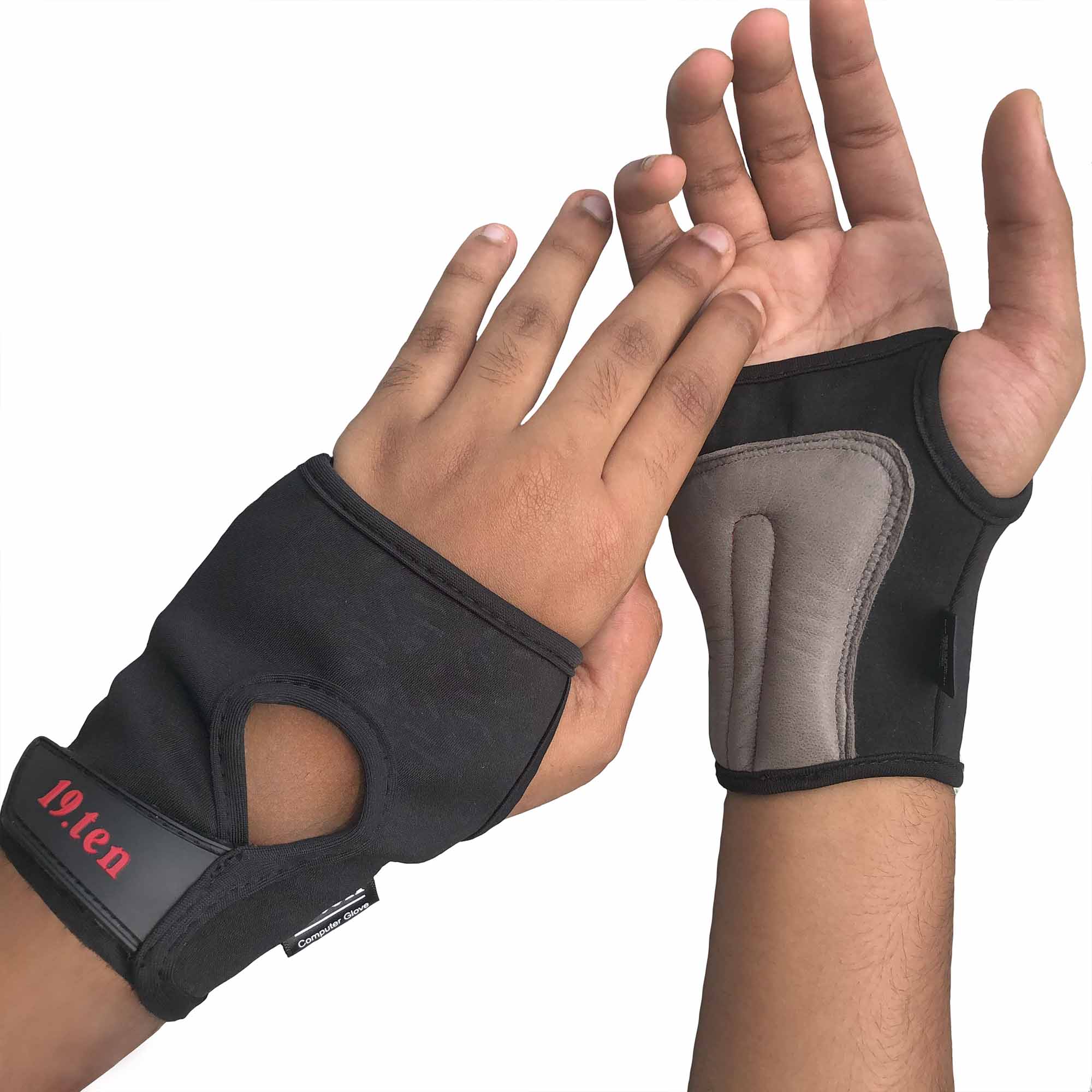 19.ten Patented Smart Glove – a specialised wrist protector designed to prevent and treat Repetitive Strain Injuries in the wrist area, focusing on Carpal Tunnel Syndrome and Tendonitis. The glove features a proprietary, contoured, ergonomically designed channel support padding that provides cushioning and protection for the sensitive pisiform bone in the wrist, keeping it safe from hard surfaces and making repetitive tasks more comfortable. Prevention of compression and inflammation of the median nerve and tendons is ensured. Made of metal-free materials, the glove offers freedom of movement and comfort. The top side of the glove features a lightweight, antimicrobial, multidirectional stretch mesh that gently wraps around the palm, providing unrestricted finger movement, limiting wrist motion, and reducing pressure on nerves and tendons. The SMART GLOVE has been designed to hold the wrist in a neutral position, cushioning the affected area and providing warmth. The glove has an opening for the thumb and other fingers, allowing natural finger movement without hindrance. It is perfect for all-day use and suitable for wrist injuries resulting from sporting activities or general wrist pain. The glove features a customised fastening tab that makes it easy to put on and take off. It is made of durable materials, lightweight, washable, and easy to carry in your pocket.